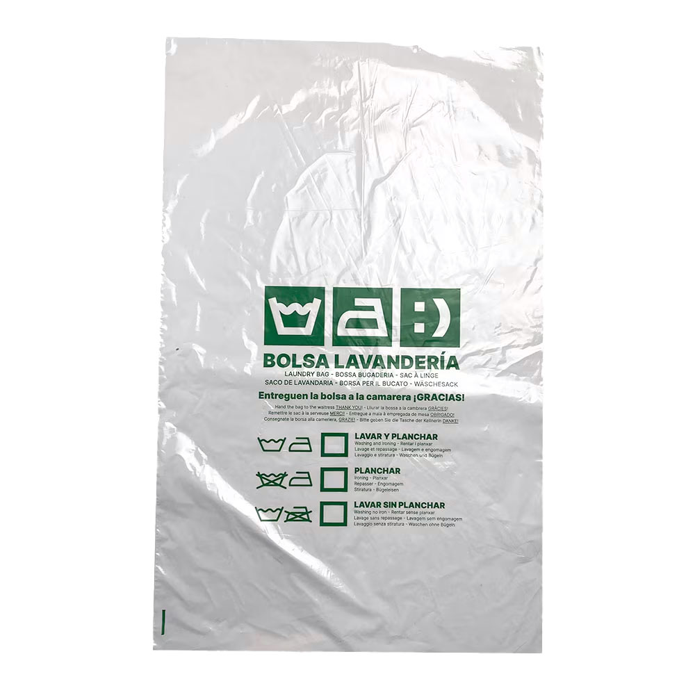Boses de bugaderia, fabricades en PEAD (polietilè d’alta densitat), en format pla imprès i color blanc. Dissenyades per a ús professional en envàs i embalatge dins del sector bugaderia i industrial.