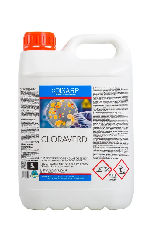 El Lleixiu CLORAVERD és una solució d’hipoclorit sòdic apta per a ús alimentari, altament efectiva contra els microorganismes responsables de malalties transmeses per l’aigua. Elaborada a partir de primeres matèries que compleixen la NORMA UNE-EN 901:2000, Tipus 1, sobre productes químics utilitzats en el tractament d’aigua destinada al consum humà.