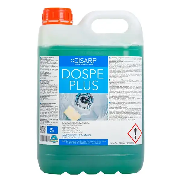 El Rentaplats DOSPE BLAU és un detergent especialment formulat per a la neteja manual de bateries de cuina, peces de parament i vaixelles amb alts continguts de greix i brutícia.