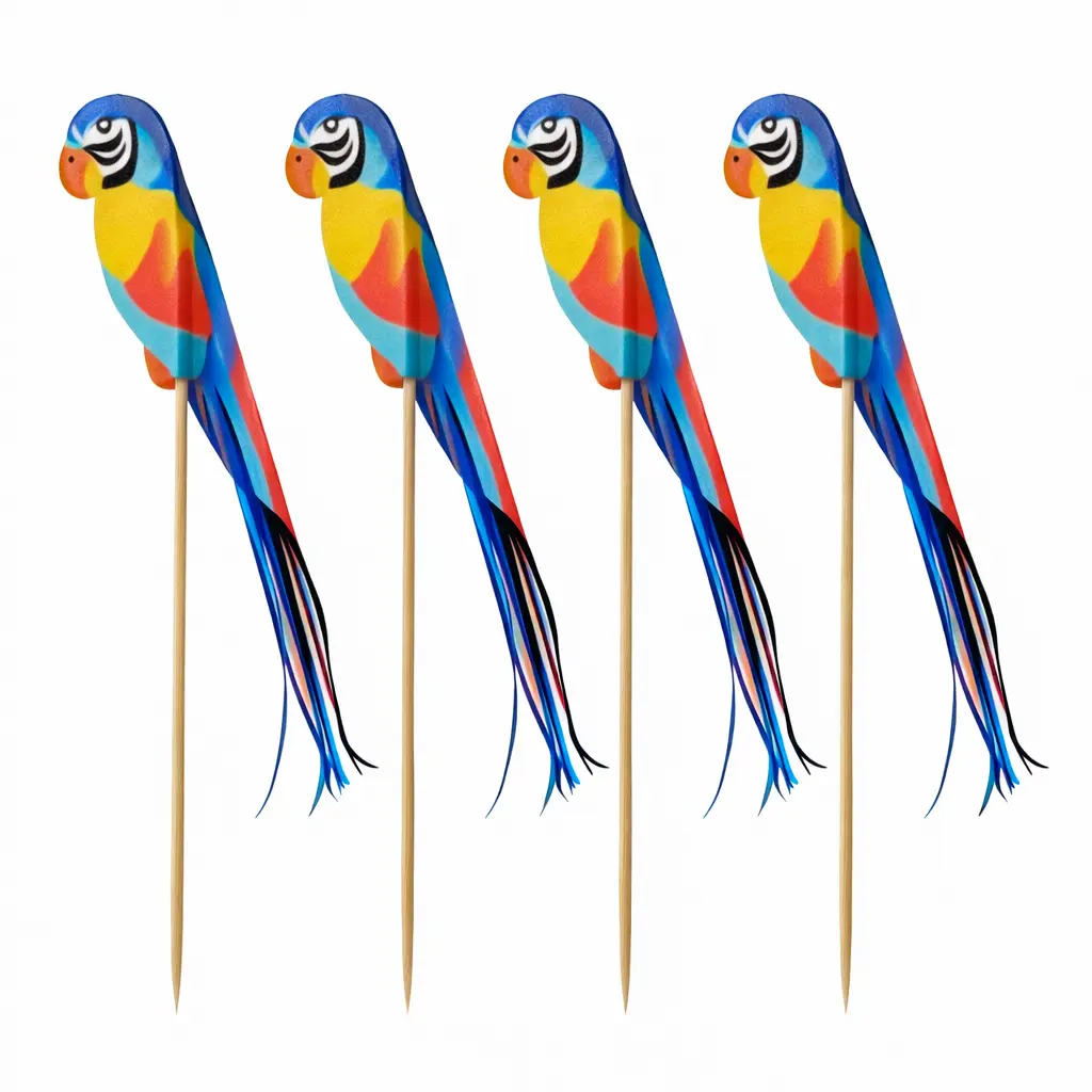 Els Pals Decoratius “Parrot” estan dissenyats per afegir un toc tropical i cridaner a la presentació de còctels, begudes i postres. Inspirats en l’exotisme dels lloros, aquests adorns estan disponibles en dos models diferents, perfectes per personalitzar cada servei.