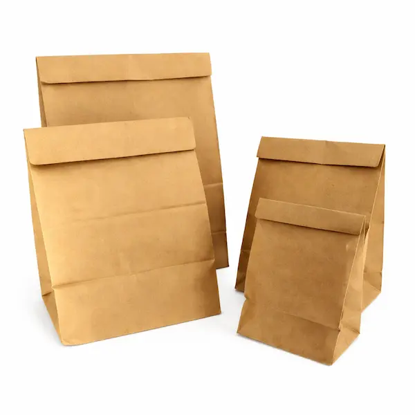 Las bolsas de papel Kraft sin asas, también conocidas como bolsas americanas, están más de moda que nunca. Este tipo de bolsa, con formato vertical y sin asas, nos transporta directamente a las clásicas películas americanas de los años 80, donde eran habituales en escenas de supermercados, take-away o reparto de comidas.