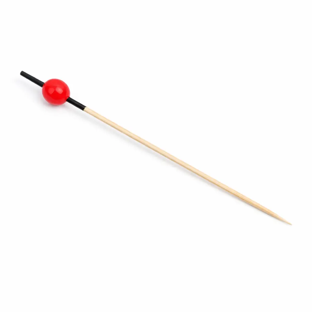 Los Palillos Boleta Rojo/Negro están diseñados para decorar y realzar la presentación de cócteles, aperitivos y brochetas. Su diseño con boleta de color rojo o negro añade un toque de sofisticación, ideal para bares, restaurantes y eventos de catering.