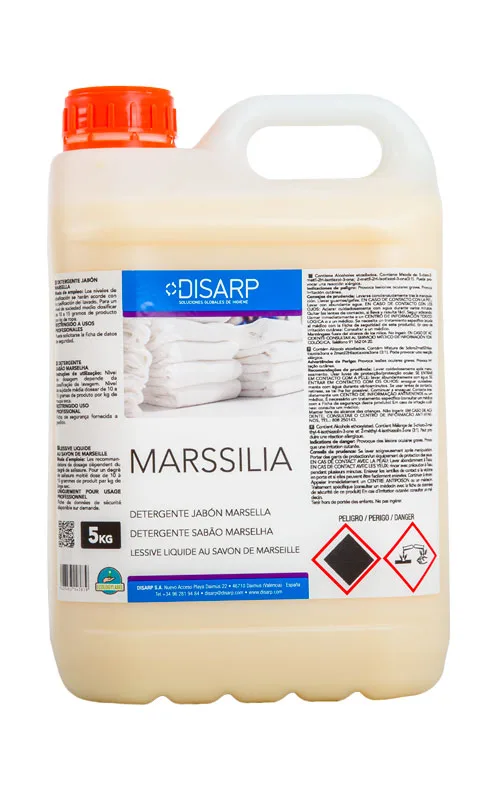 El Detergente MARSSILIA es un detergente líquido concentrado con jabón natural y espuma controlada, ideal para su uso en todo tipo de tejidos, tanto en lavados a mano como a máquina. Su presentación en formato gel permite una dosificación manual precisa en lavadoras domésticas y semiprofesionales.