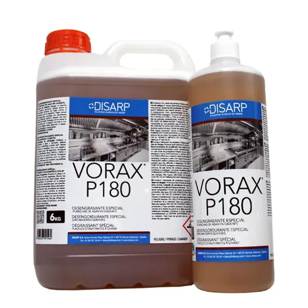 El Desengrasante VORAX P180 es un formulado de alta alcalinidad diseñado para trabajar a temperaturas superiores a 150°C, permitiendo la limpieza de planchas de asar sin necesidad de enfriarlas. Su fórmula avanzada minimiza la generación de vapores y evita salpicaduras, asegurando un proceso de limpieza más eficiente y seguro.