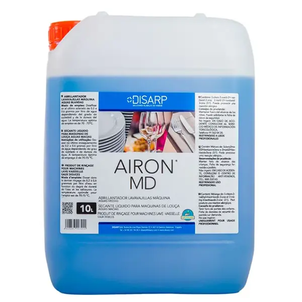 El Abrillantador para Vajilla y Cristalería AIRON MD es un aditivo de enjuague altamente concentrado, diseñado para vajilla y cristalería en aguas semiduras (15-30 ºF). Su fórmula especializada evita las incrustaciones de cal y garantiza un secado rápido, uniforme y sin velos. Para obtener los mejores resultados, se recomienda utilizarlo con agua de aclarado a 70-75º C.